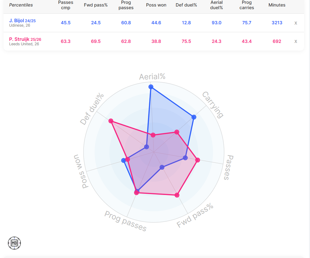 The Slovenian will add more aerial dominance to the Leeds team, but he is not as good on the ball as Struijk, so Farke may have to think hard about making that change.
