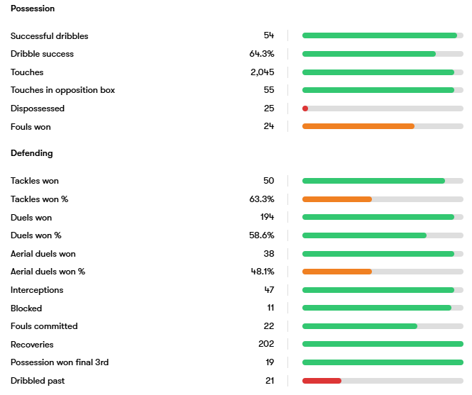 Based on his last season in Switzerland, we can see he is a defensively solid fullback who is great on the ball. Schmidt ranked highly in duels and tackles won. And was a dribbling menace on the overlap. If Leeds are high on him, he can slot in Junior Firpo’s role next season.