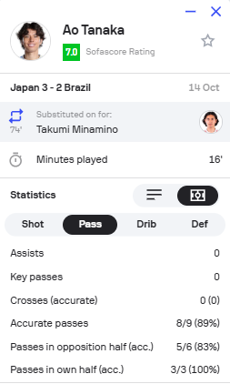 Ao Tanaka vs Brazil Credit: Imago