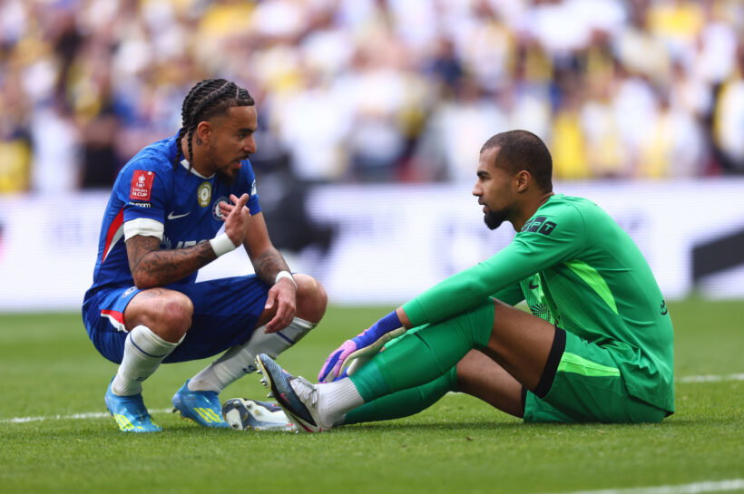 Robert Sanchez goes down in FA Cup semi-final. Credit: Imago