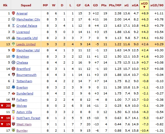 Leeds rank the sixth best team in the league on expected goal difference, and that quality showed against a very flat West Ham side on Friday.