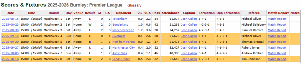 Looking at the numbers on FBref proves Daniel Farke’s defence wrong. Neither Arsenal or Manchester City have made the trip to Turf Moor yet, but some teams have gotten better stats this season.