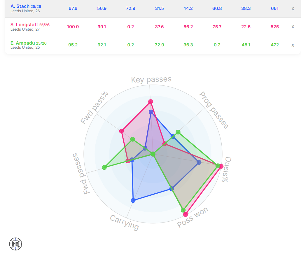 As we have discussed, the midfield three have worked perfectly for Leeds, needed against some tough Premier League teams in the opening months of the season.