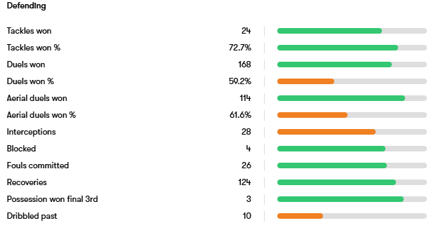 The 25-year old had a solid season, but him missing out on duels and tackles is still a problem.