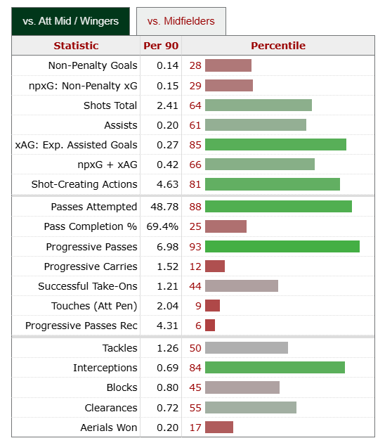 It is clear to see that he has been regularly playing incisive passes into the final third and the opposition’s penalty box to create those chances for the forwards.