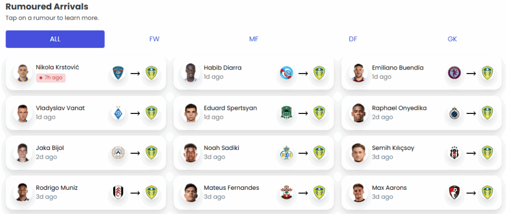 It seems clear that the club is targeting players with experience at the highest level that can contribute to the team right now. The others players linked with a move are also at top clubs. Hopefully Leeds can stack their team with quality ahead of next season.