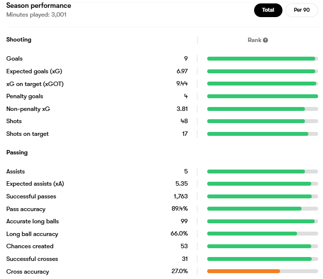 His stocks are very low, but Douglas Luiz is a very good player. You do not go from one of the best in the Premier League to the worst player in Europe in one season. Below are his numbers form his last season at Aston Villa.