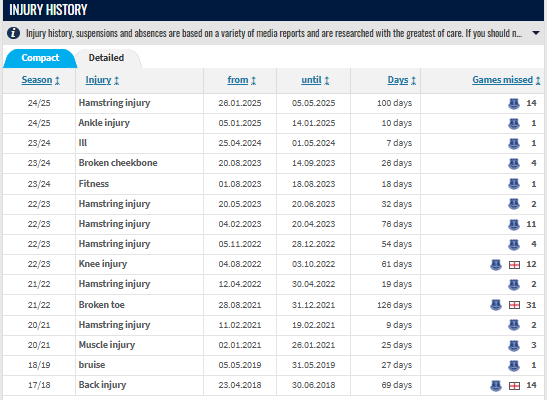 Since 2021, the striker has only started more than 15 league games twice in the last four years. Calvert-Lewin has also crossed 2,000 minutes played just once during that period.