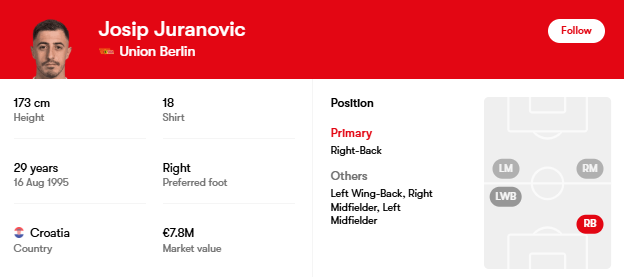 According to TBR football, Leeds United are interested in signing Union Berlin defender Josip Juranovic. The 29-year old is said to be attracting a lot of interest from the Premier League this summer. West Ham, Fulham and Burnley are also in the race to sign the Croatian. With two years left on his deal, Union Berlin may demand a small fee to complete the deal.