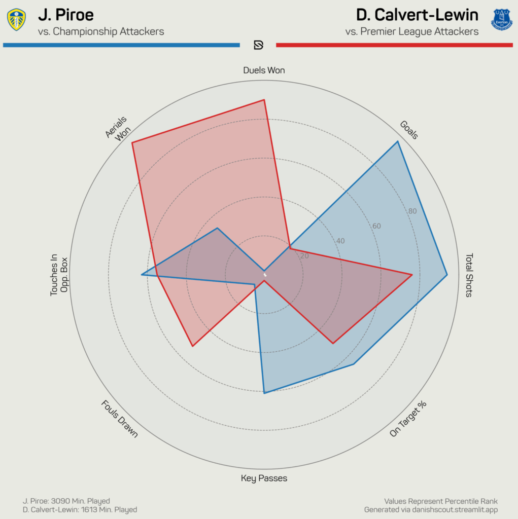 Joel Piroe has the edge after his prolific exploits last season, but Calvert-Lewin brings a whole new dimension to the attack. His hold up play and aerial ability alone has won games for Everton this past season. In a functioning attack like Leeds United, he could definitely find his groove again.