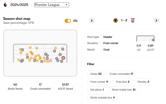 The 31-year old has been a back up keeper for a large part of recent seasons. And when he has been in goal, the statistics have not looked impressive. Johnstone has featured in seven Premier league games this season, and has conceded five more goals than expected.