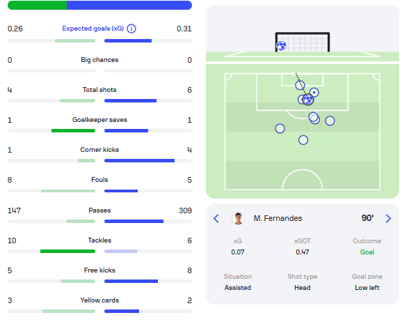Rodon has every right to be frustrated by the late goal; it felt like everyone went to sleep for a split second before heading it home. Looking at the expected goals, it was around 0.07 so it was not a chance that should have gone in.