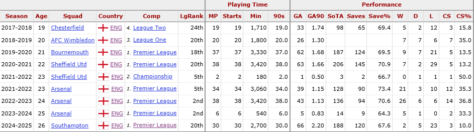 But Ramsdale’s red flags come from the numbers. The 27-year old has had five seasons where he has started more than 30 games. And in those five seasons, he has kept 10 or more clean sheets just twice. Ultimately your defence plays a part in whether you face shots and concede goals, but the numbers are just not in Ramdsale’s favour.
