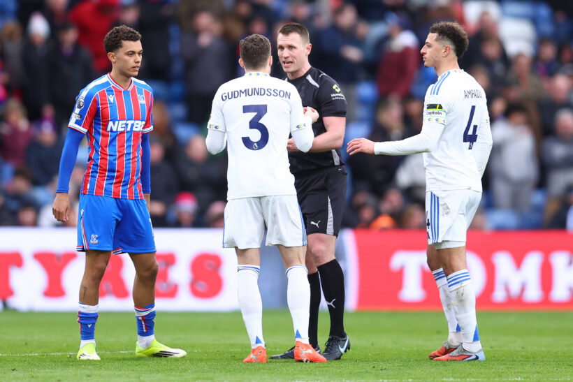 Bramall was in charge of Leeds’ 0-0 draw at Selhurst Park against Crystal Palace in March and produced a bizarre red card to send off Gudmundsson.