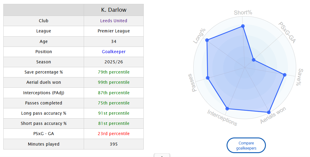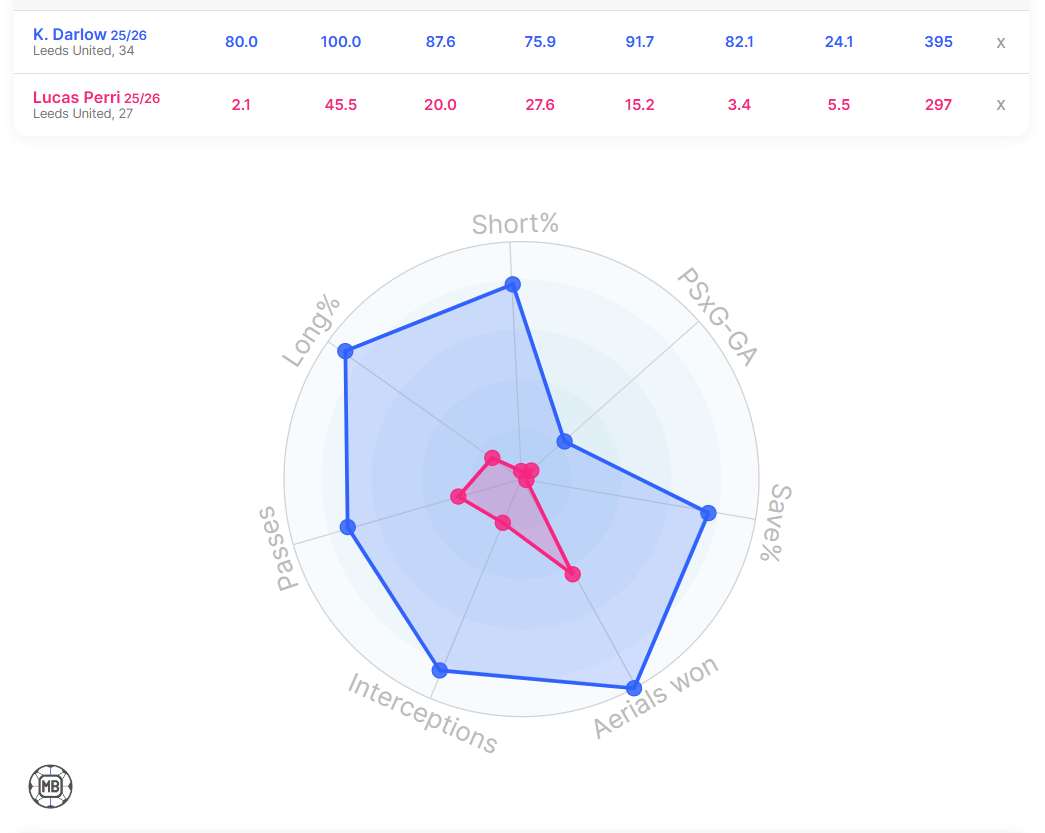 Comparing the two goalkeepers this season shows that Darlow has no business being Perri’s number 2 at Elland Road this season, if performances are the only metric.