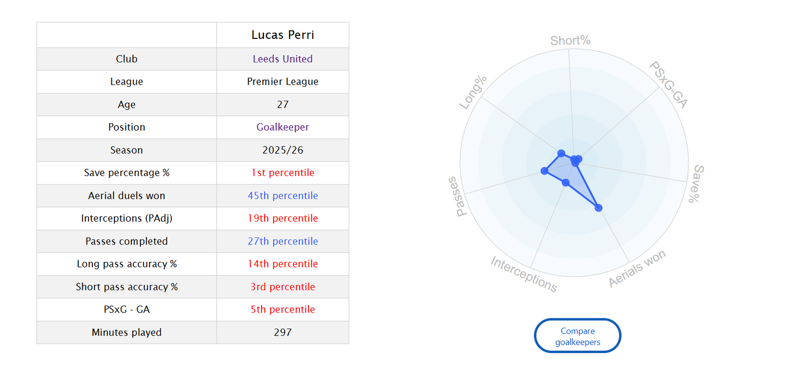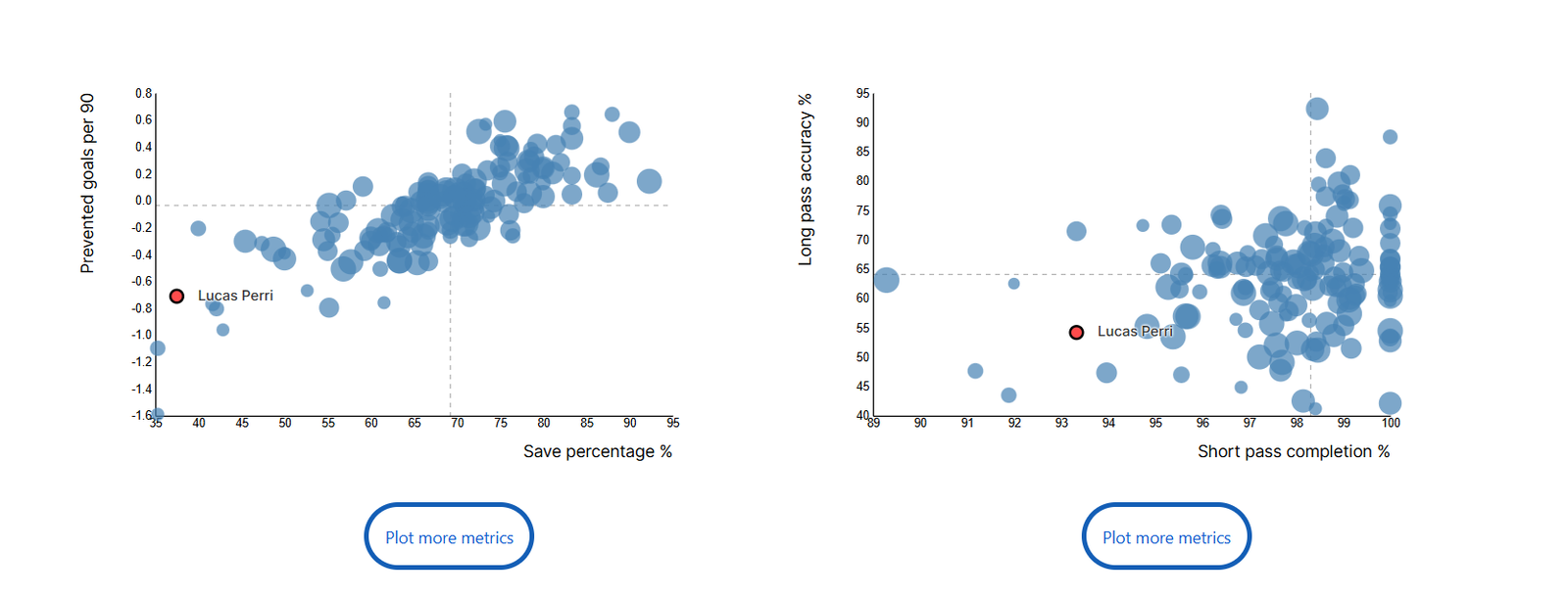 Just based on numbers, Perri has been one of the worst goalkeepers this season, and his numbers in the limited performances paint a very stark picture.