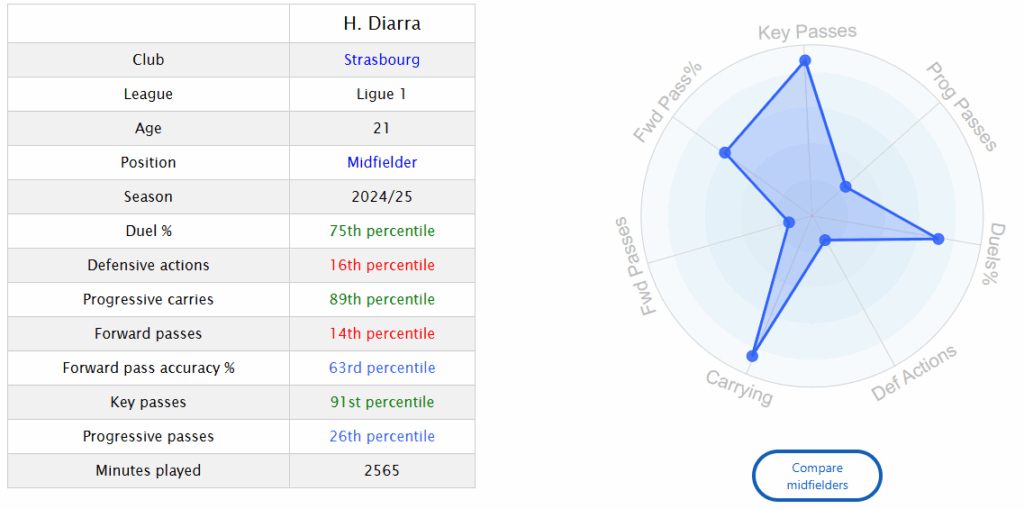 Diarra could win the ball, and carry it in transition. The Senegalese international is also very good at chance creation. Hopefully Leeds secure the deal for Anton Stach soon.