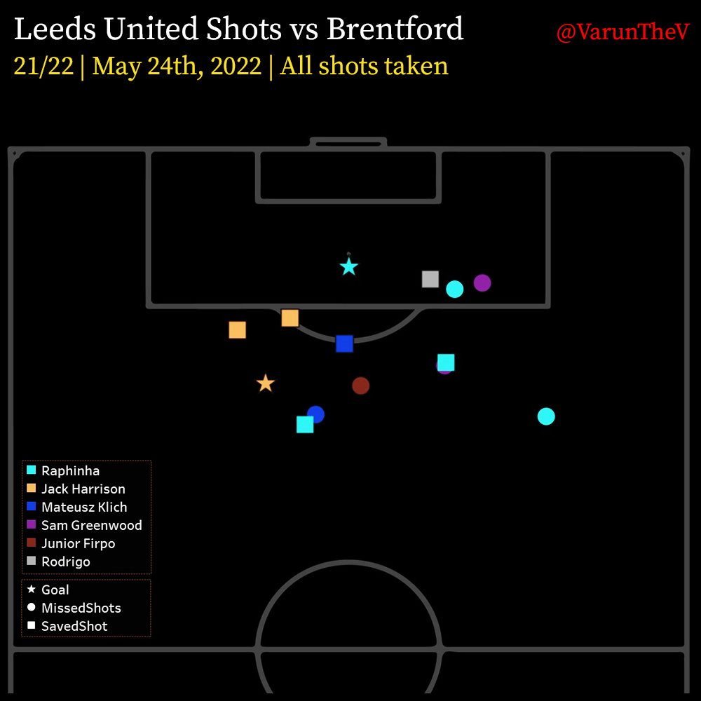 While the number of shots weren’t that many, Leeds’ efforts to progress into the opponent’s half was much clearer. They broke through the Brentford ranks on multiple occasions to reach dangerous areas. As it has been all season, there was a right-sided bias to be observed, but it was effective and did the job.