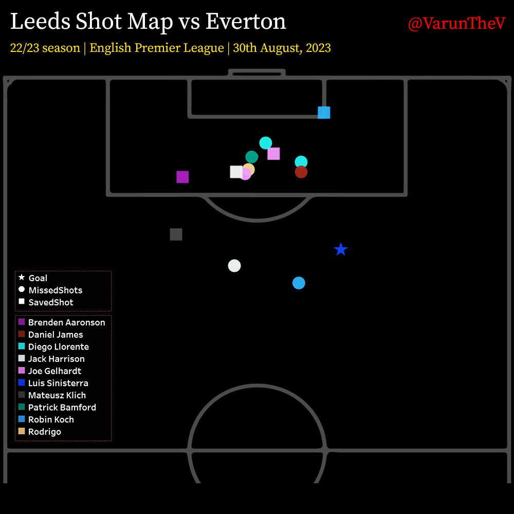Leeds’ dominance on the game gave rise to another interesting feat – 10 outfield players registered a shot on goal throughout the game. A surprising stat, Leeds 14 shots were divided among 10 players.