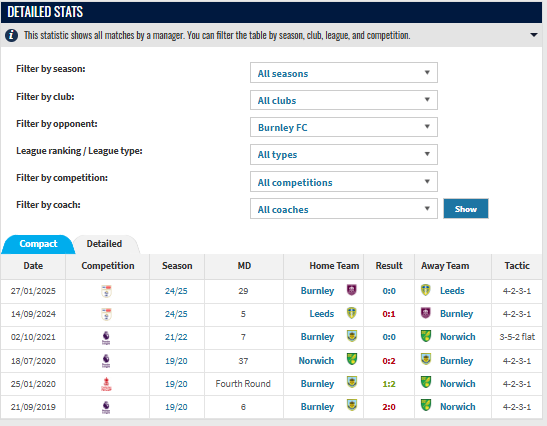 The German has one win in six against the Clarets, with the last victory coming in the FA Cup in 2020. The Leeds boss has also not beaten Scott Parker since he took charge; Saturday’s clash will certainly be an interesting game between both teams.