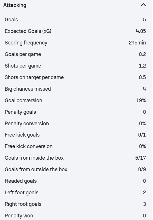 The Spurs loanee has a 19 percent conversion rate when it comes to chances but that number drastically drops to just seven for Gnonto this season.