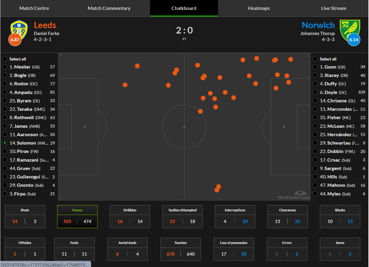 A look at Solomon’s performance in the 2-0 win over Norwich earlier this month showed how Solomon diligently remains on the left-hand side of the pitch to provide width to the team.