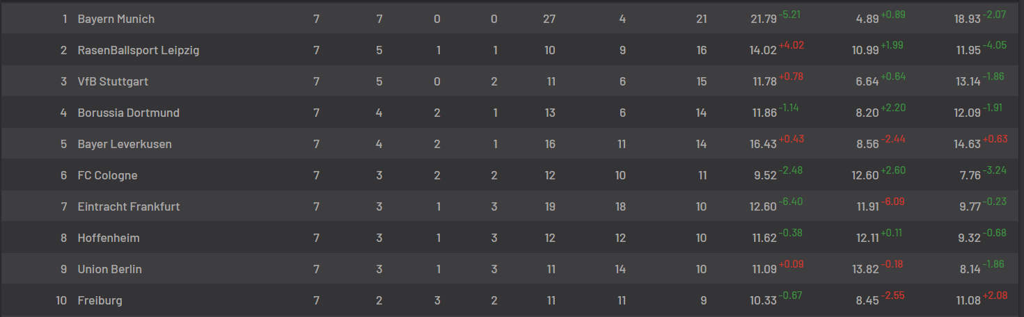 Eintracht have scored six more goals in the league than their xG. However, that has been negated by the fact that they conceded six more than they should have.
